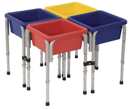 The four-station Sand & Water Center from ECR4Kids will provide hours of tactile discovery and fine motor play in your childcare facility. Four brightly colored polypropylene bins can hold water, sand and small toys. The sturdy steel legs have ABS feet and can adjust to accommodate children of multiple ages. Each bin comes with a clear cover to keep contents clean and contained.Key Features Four bins with clear covers Adjustable legs with ABS feet Stations can be configured in several waysSpecifications Suggested age range: Three years and up Bin material: Polypropylene Leg material: Powder-coated steel Leg Heights: 20", 22 1/2" or 26" Width: 29 3/4" Depth: 29 3/4" Assembly required Warranty: One year